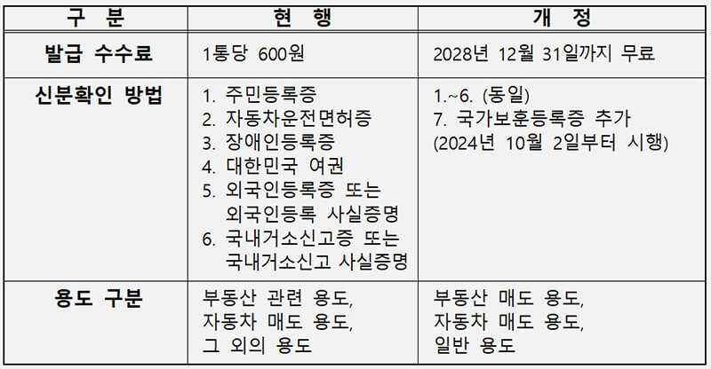 현재 본인서명사실확인서는 현재 이용 활성화를 위해서 2028년까지 한시적으로 1통당 600원이었던 발급 수수료를 면제하기로 했습니다.