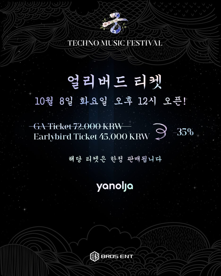궁 테크노 뮤직 뮤직 페스티벌의 얼리버드 티켓은 2024년 10월 8일 오후 12시에 오픈됩니다. 티켓 판매 마감은 10월 14일까지로 일주일 간만 진행합니다.